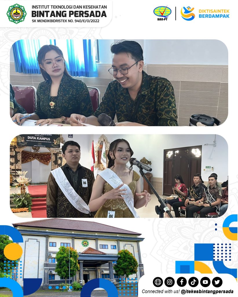 Kegiatan Pemilihan Duta Kampus Bintang Persada 2026 dengan tema “Paramartha Widya Laksana” merupakan ajang pengembangan potensi, karakter, dan intelektualitas mahasiswa yang diselenggarakan oleh UKM Duta Kampus Institut Teknologi dan Kesehatan Bintang Persada. Kegiatan ini bertujuan untuk melahirkan figur mahasiswa yang mampu merepresentasikan nilai luhur kampus, berwawasan luas, berintegritas, serta menjadi teladan bagi civitas akademika.
